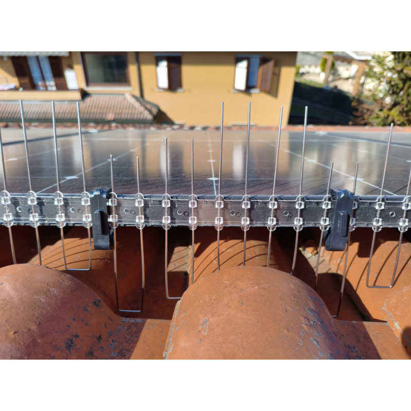 Barriera in policarbonato e acciaio INOX per la protezione dei pannelli fotovoltaici di nuova installazione o esistenti, dalla nidificazione e la permanenza degli uccelli in genere e dei piccioni in particolare.